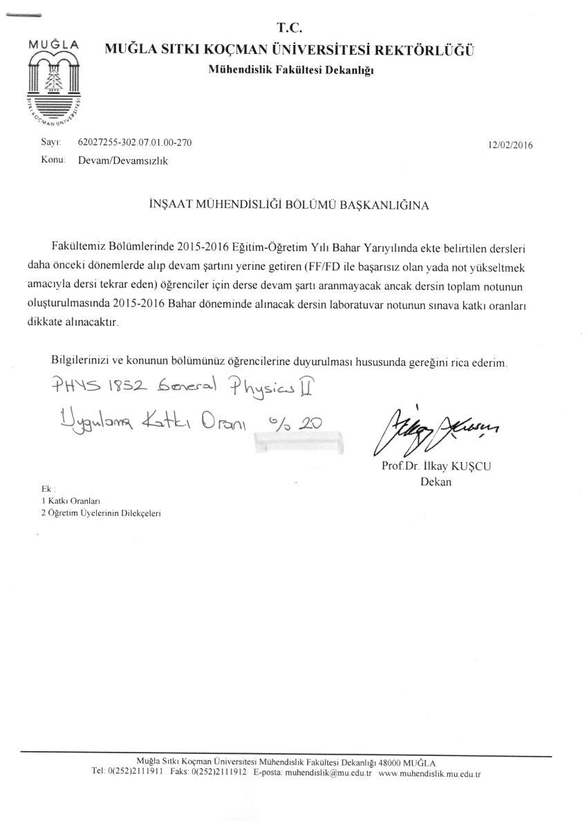 General Physics II Dersi (Uygulama) General Physics II Dersi (Uygulama) duyurusu için tıklayınız. Son Güncelleme : 17.02.2016 13:59:10 Okunma Sayısı : 850